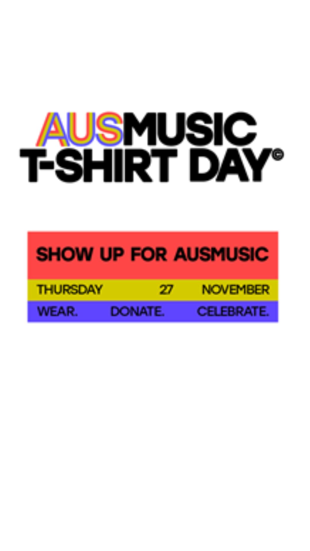 Ausmusic T-Shirt Day is an annual day of fun and awareness on Thursday 27 November to celebrate Aussie music and raise urgently needed funds for music workers in crisis.
