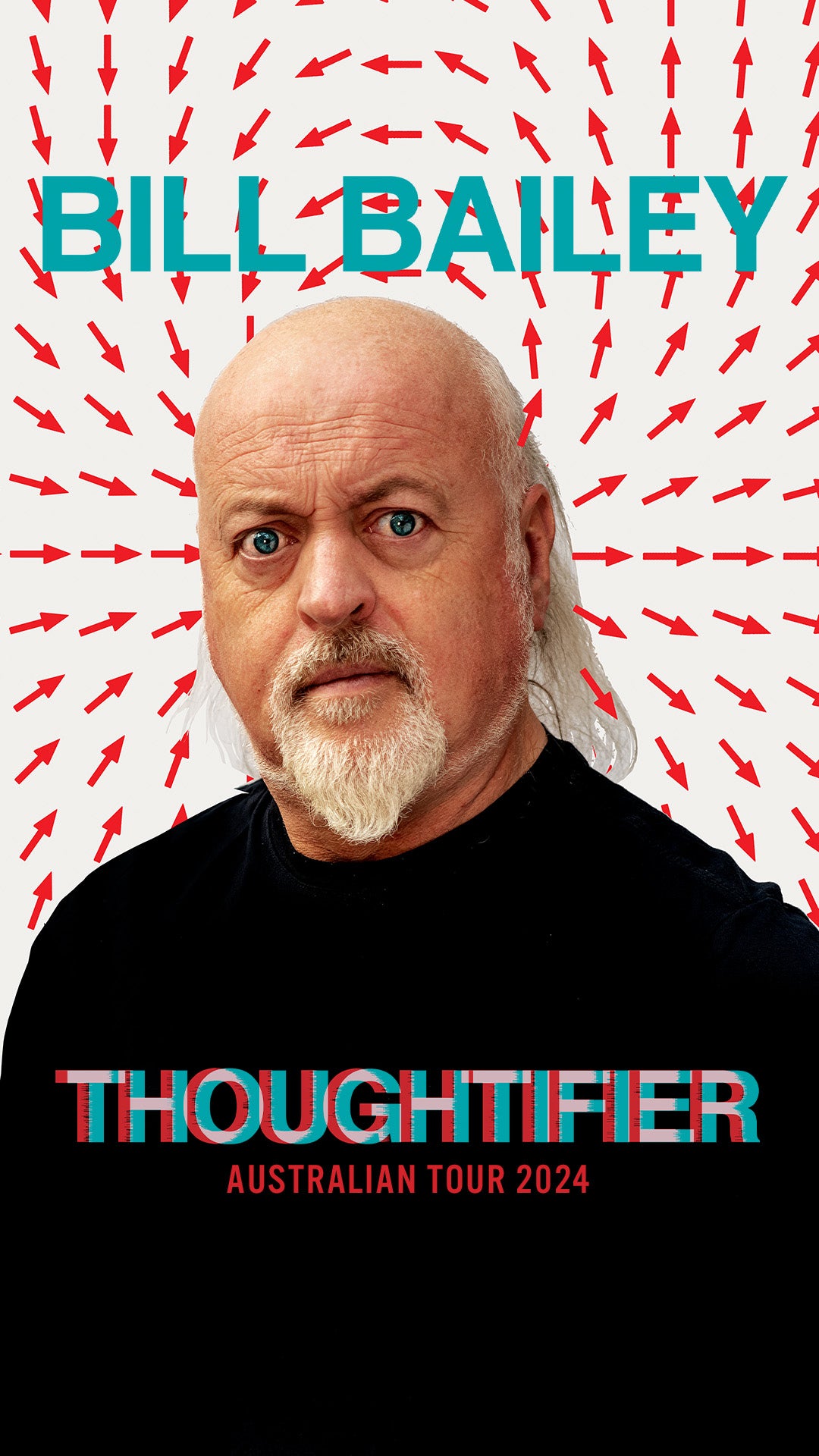 A whirl of comic, flights of fancy, extraordinary music and thought-provoking ideas, Thoughtifier is classic Bill Bailey. Whether it’s with Bluetooth bouncing ‘rock balls’ or his love of gospel music, he demonstrates our human instincts for harmony, melody and rhythm to brilliant effect. Using a plethora of instruments, screens and AI he shows our human capabilities can transcend the pesky algorithms with his hilariously useless AI ‘BillBot’.. There’s a real heart to the show, when he recounts his own mistaken death, and his love of the natural world, with whale song, and a ballad about sentience in our crustacean friends. With outlandish new instruments such as the dazzling laser harp, and a thread of philosophy running throughout, Thoughtifier takes all the greatest elements of a Bill Bailey show and propels them to new dizzying heights..