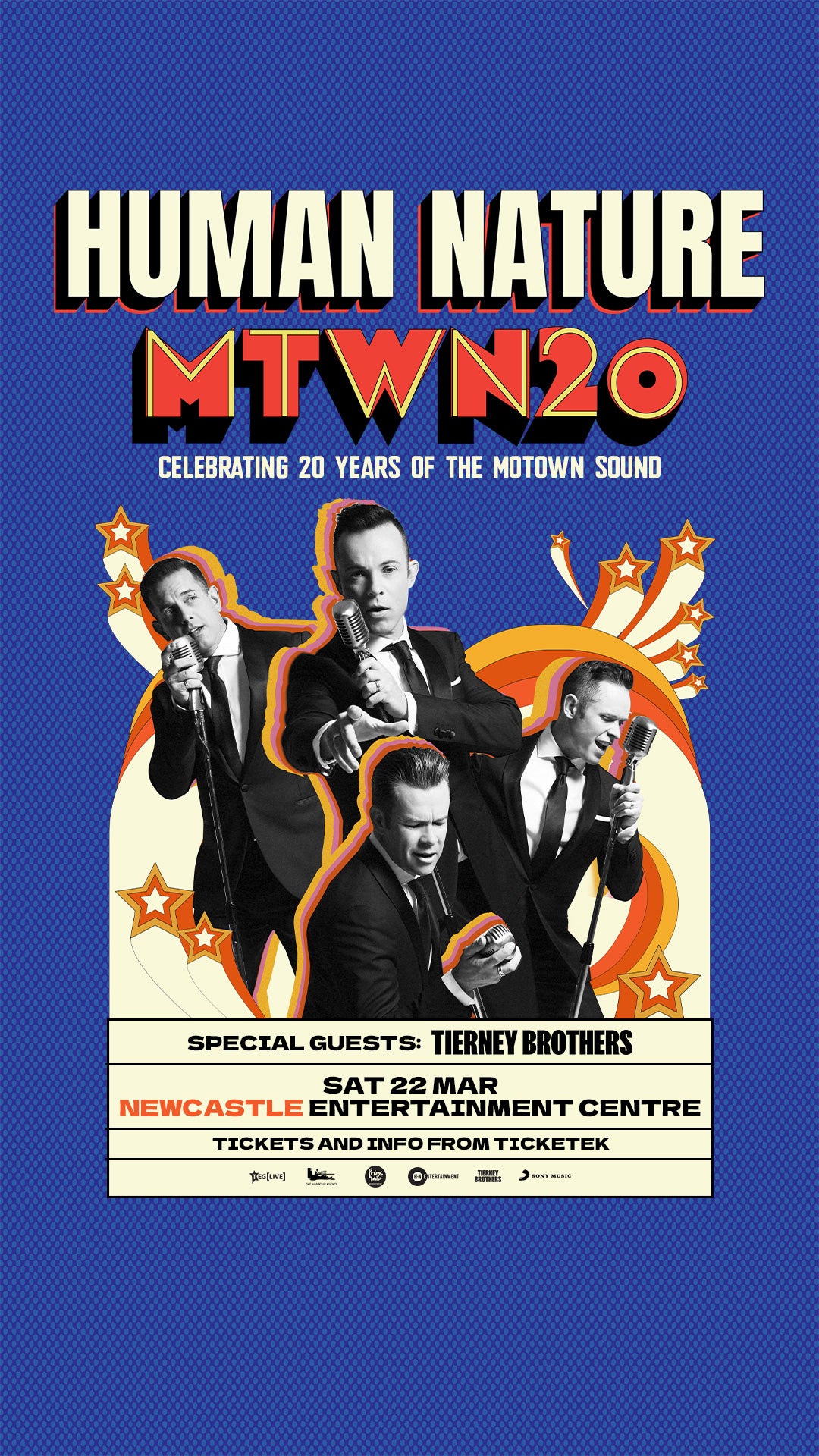 Human Nature are all about creating feel-good music and putting on captivating live shows. With their unwavering passion for entertaining and connecting with audiences, the group continues to spread joy and inspire fans across the globe. The MTWN20 tour is set to deliver everything a Human Nature show is known for, so get your tickets and get ready to dance with with Toby, Phil, Andrew, and Mike this March & April!